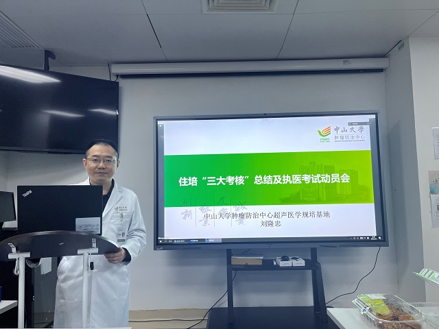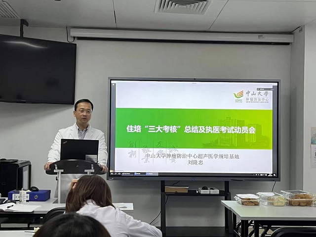 中山大学肿瘤防治中心超声医学规培基地是广东省第一批超声医学教学基地,具有教学经验丰富,师资队伍成熟,后备人员充足的优点。基地定期开展多种形式的教学活动,从超声基础、解剖基础、临床思维、科研培养等多维度规范化培训住培学员及专业型研究生,近两年基地学员三大考核通过率100%,蝉联全省第一。除此之外,科室业余活动丰富多彩、团队氛围和谐友爱,致力于帮助同学们在职业生涯早期培养良好的工作学习生活习惯,诚挚欢迎各位同学选择中山大学肿瘤防治中心超声医学规培基地学习。