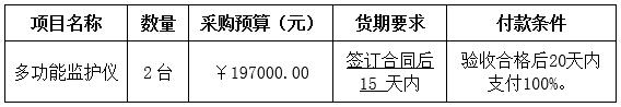 中山大学附属肿瘤医院麻醉科多功能监护仪采购项目采购信息