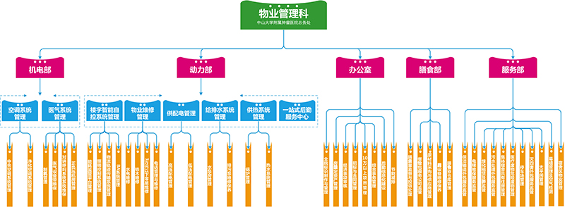 物业管理科是中山大学附属肿瘤防治中心的后勤保障部门,科室的主要职责是保证中心的正常运作,科室下设:办公室、机电部、动力部、膳食部、服务部五个管理部门。物业管理科在整个医院运行体系中扮演着保障、服务、节能、增效的不可缺少的重要角色,是医疗服务和医院运行的支持系统。