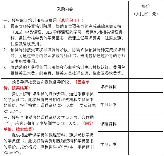 项目名称:美国心脏协会心血管培训中心培训服务项目