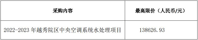 2022-2023年越秀院区中央空调系统水处理项目询价公告