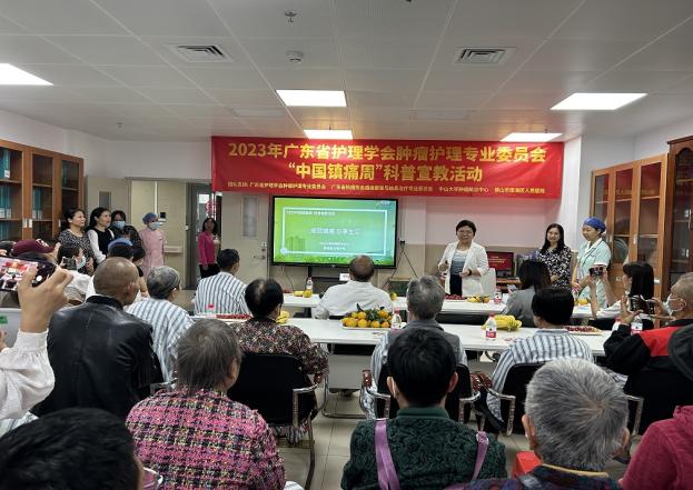 数据显示,我国有超3亿人遭受疼痛困扰,其中,老年癌症患者是疼痛的高发人群,且因其对疼痛的认知误区较多,不利于疼痛在癌症诊治过程中被发现和被规范诊治,从而致患者及家属受到疼痛所带来的额外的身体和心灵的痛苦折磨。为将癌性疼痛规范化诊疗理念及自护知识惠及省内更多的老年肿瘤患者人群和护理人员,中心疼痛护理小组联合广东省护理学会肿瘤护理专业委员会、广东省抗癌协会癌症康复与姑息治疗专业委员会和佛山南海区人民医院在重阳节来临之际,首次开展了面向老年肿瘤患者群体的粤语科普行活动。