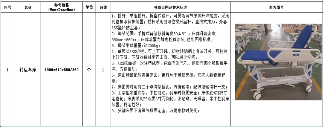 中山大学附属肿瘤医院鼻咽一区转运车床采购项目进行市场调研,请提交密封报价、公司简介及相关业绩资料(如有),项目内容如下: