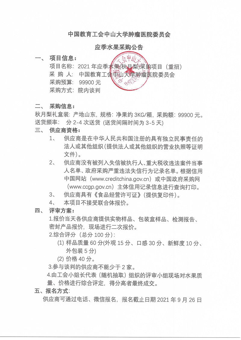 中国教育工会中山大学肿瘤医院委员会应季水果采购公告