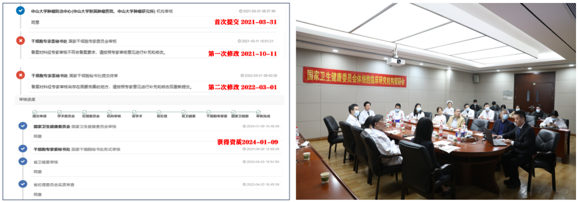 回望过去三年多的历程,生物治疗中心和临床研究部分别在夏建川教授,张星主任和李苏主任的带领下,2020年8月开始着手准备体细胞临床研究机构备案相关材料,2021年3月31日首次提交体细胞临床研究机构备案材料,经过2次对国家评审专家意见的详细回复和1次国家卫生健康委员会组织的实地调研和考察。2024年1月9日,国家卫生健康委员会终于同意中肿获得体细胞临床研究机构备案资质。