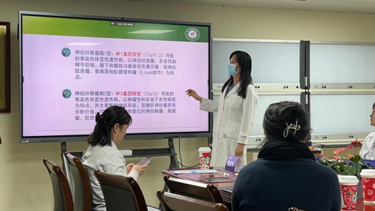 此次会议,护理部也参与了讨论,神经外科的周志欢护士长,提出了日常更容易被忽视的患者及家属的心理健康问题。因为NF疾病累及全身多个系统,致残性高,会造成一定程度的心理障碍,因此,心理疏导也是NF治疗非常重要的课题。