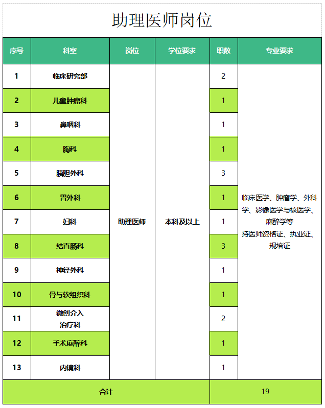 2.助理医师岗:须持医师资格证、执业证、规培证。合同聘用制,每个聘期3年,最多2个聘期。本科学历,年人力成本25万起;硕士学历,年人力成本35万起。