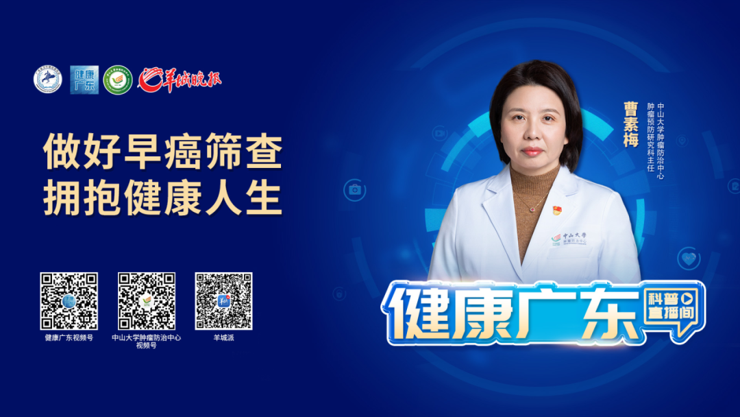今年的4月15-21日是第30届全国肿瘤防治宣传周暨中国抗癌日活动。在广东省卫生健康委的具体指导下,中山大学肿瘤防治中心与羊城晚报联合推出“健康广东”科普直播间-中山大学肿瘤防治中心专场直播。中山大学肿瘤防治中心肿瘤预防研究科主任曹素梅做客直播间,为大家科普如何做好肿瘤早筛,干货满满,让肿瘤无处可藏。