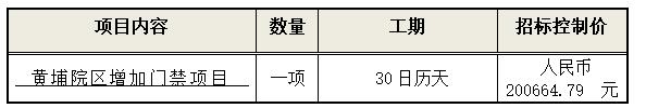 二、 招标项目名称: 黄埔院区增加门禁项目