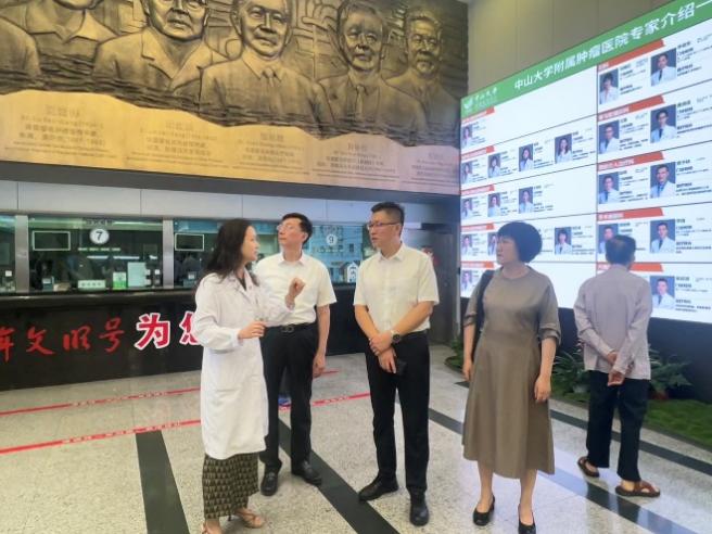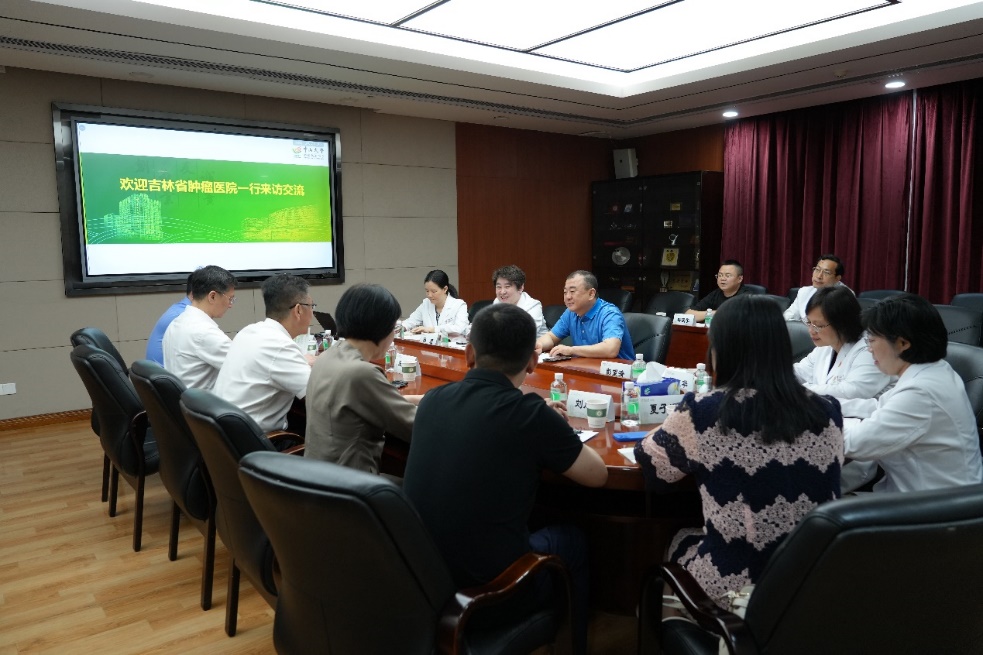 7月25日,吉林省肿瘤医院王茂楠院长带队,张越副院长、于舒兰总会计师及职能部门负责人等一行来到中山大学肿瘤防治中心交流。