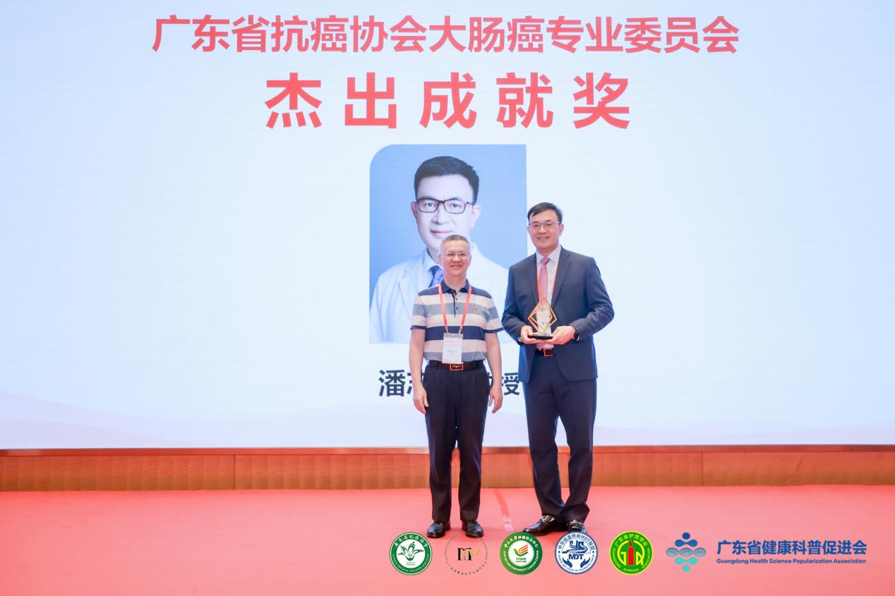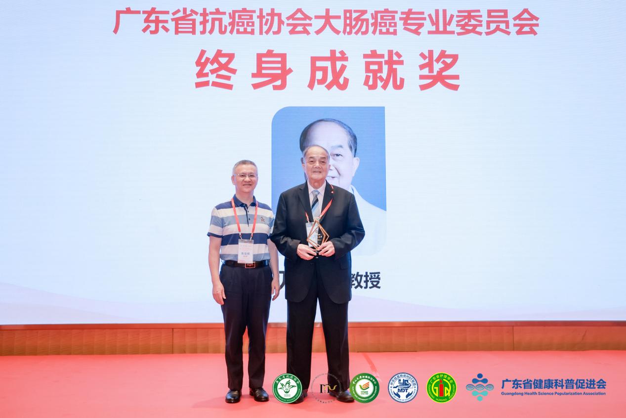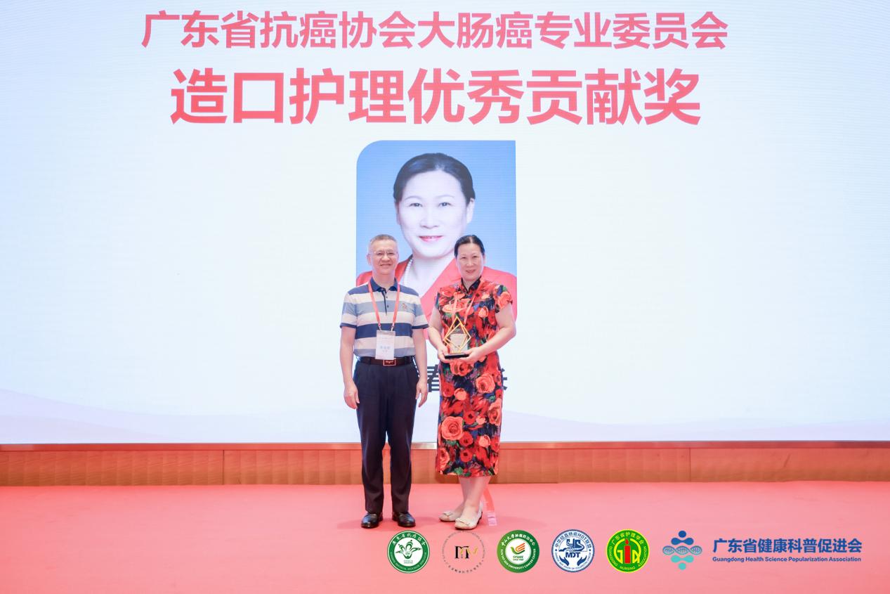 会议的第一个环节是隆重的表彰仪式,党委副书记、纪委书记张远权作为颁奖嘉宾,分别给万德森教授、潘志忠教授、郑美春主任护师颁发了广东省抗癌协会大肠癌专业委员会“终身成就奖”、“杰出成就奖”和“造口护理优秀贡献奖”,以表彰三位在结直肠癌防治事业的卓越贡献。