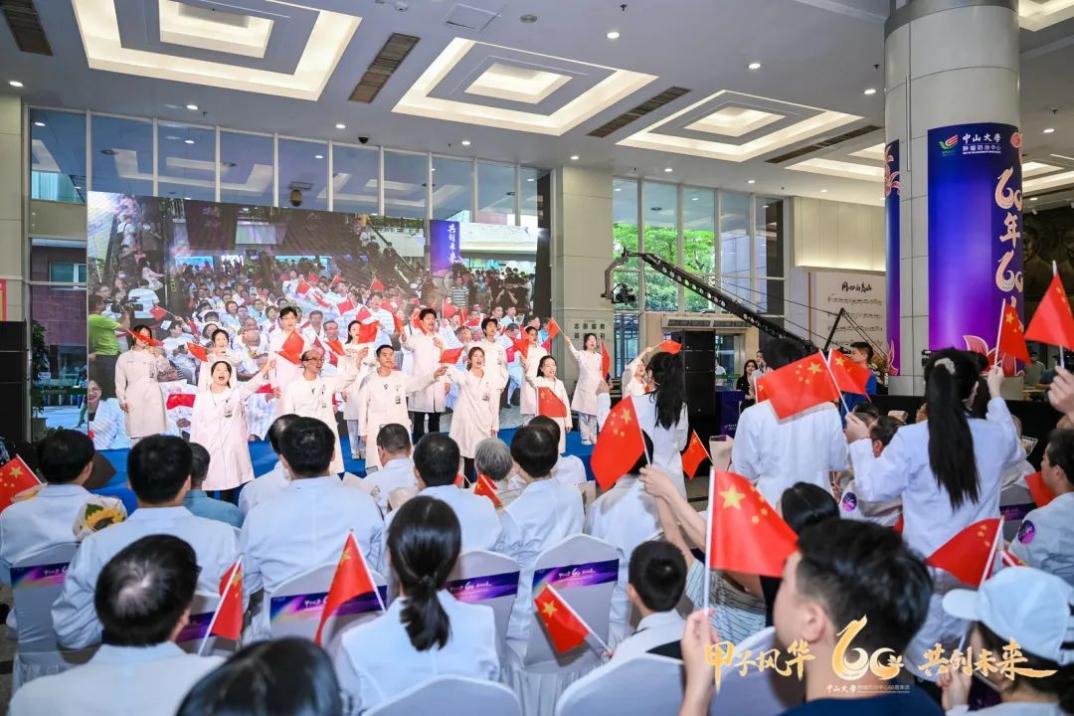 发布会现场巧妙融合了历史与现代元素,让受众仿佛穿越时空,见证中肿从初创到今天的历程。一面面五星红旗挥舞,越秀院区、黄埔院区和甘肃医院同唱《我和我的祖国》,活动在歌声中开启。