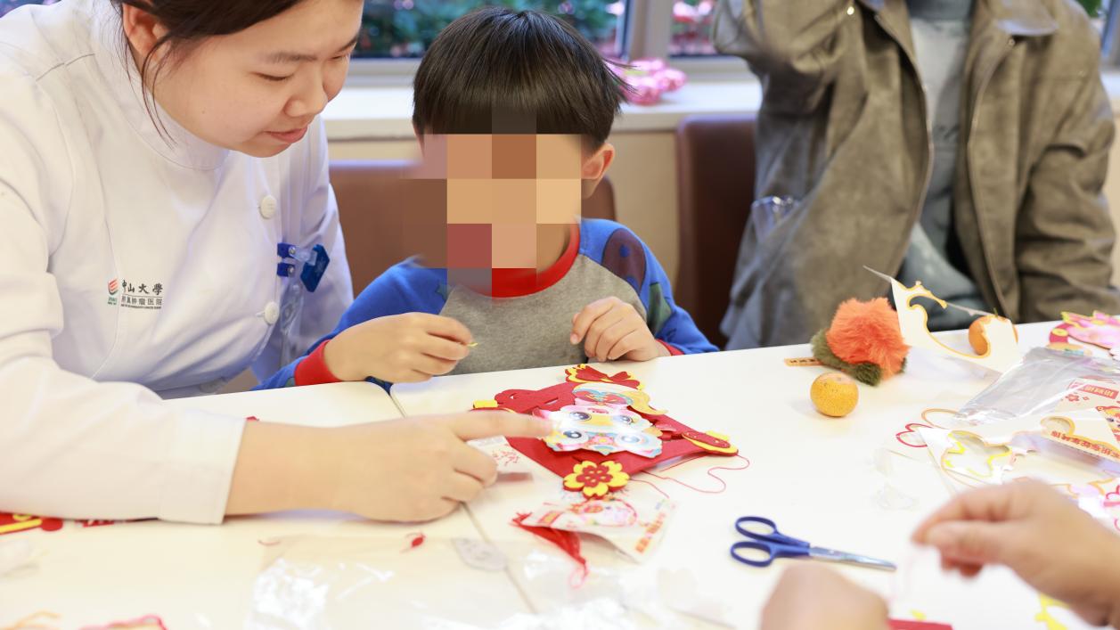 新年手工灯笼DIY、传统特色剪纸以及写心愿卡片的时光,静谧而美好,宛如一首悠扬的抒情诗。患者与家属们全神贯注,沉浸在手中的材料世界里。彩纸在指尖轻盈翻转,宛如翩翩起舞的蝴蝶;剪刀游走间,裁出一个个寓意吉祥的精美图案。不一会儿,一盏盏贺岁灯笼逐渐成型,它们恰似承载着希望的明灯,在病房中散发着柔和而温暖的光芒。心愿卡片上,一行行真挚的字迹,承载着对新岁满满的憧憬、对康复的殷切期盼。那是来自心底最炽热的声音,在新春佳节的浓厚氛围中,愈发坚定有力,声声入耳。