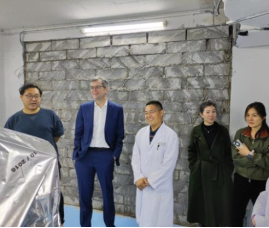 会后,Weber教授在黄埔院区参观了核医学科新近吊装的回旋加速器,并对设备的安装及未来应用给予了高度关注。在参观过程中,Weber教授不仅详细了解了加速器的技术参数及其在科室放射性药物生产中的关键作用,还分享了他们科室在加速器驱动核药生产及临床应用方面的丰富经验。