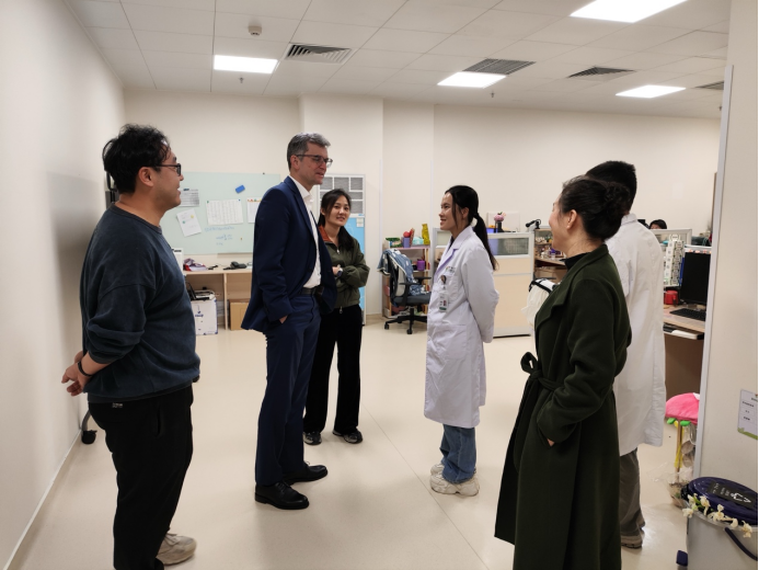 在随后的交流中,核医学科团队向Weber教授介绍了科室基本情况以及放射性核素制备、核药研发及临床转化应用等研究进展。双方围绕新型放射性示踪剂的开发、放射性核素在分子影像与靶向治疗中的应用展开了深入讨论。Weber教授充分肯定了我院在核医学影像及放射性药物研究方面的实力,并期待未来能在加速器驱动核药生产、实验及临床研究等领域与我院开展深入合作。双方约定,后续以定期线上学术讨论、双方互派学者访学等形式展开进一步学术交流。