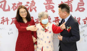 传承优秀医脉文化,牢记从医初心使命——内科及临床研究部黄埔起航仪式暨第一届科室文化共建活动抗癌路上,有你有我。在内科及临床研究部黄埔起航仪式暨第一届科室文化共建活动现场,一位特殊的嘉宾,今年80余岁,她是内科各位教授共同走过27年抗癌道路的熊阿姨。熊阿姨分享了她不平凡的抗癌岁月,讲述了她用坚强的意志、豁达的心态、积极乐观的态度与中肿共同创造了长达27年的抗癌奇迹。为了表达对抗癌事业的支持,熊阿姨已经签署了遗体捐献的志愿书,在场的所有人无不为之动容。 抗癌“明星”熊阿姨亲诉27年抗癌经历 肿瘤防治中心的辉煌,是多年以来医患共筑而成。内科和临床研究部,有着深厚的优秀医脉文化根基,前辈们就如同中心的一条常青藤萝,让后来者能够攀援而上。阳春三月,繁04-012021