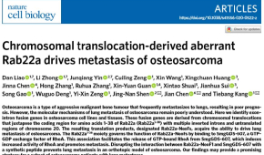 突破!中肿康铁邦团队等发现骨肉瘤的肺转移新靶标骨肉瘤是儿童和青少年最常见的原发恶性骨肿瘤,其恶性程度高,危害大,其5年生存率仅为60%左右,主要治疗手段是新辅助化疗 + 手术 + 术后化疗,但患者往往对化疗不敏感,容易发生肺部转移,预后差。因此,针对骨肉瘤的肺转移寻找有效的治疗靶点以及药物十分重要。 中山大学肿瘤防治中心康铁邦教授、中山大学附一院沈靖南教授、苏州大学陈坚教授等研究团队合作,在骨肉瘤细胞系和肿瘤组织中,发现了几个与RAB22A1-38相关的融合基因,其融合蛋白(Rab22a-NeoFs)可结合SmgGDS607,促进RhoA的活化,从而促进骨肉瘤的肺转移,并合成了特异靶向的穿模多肽,可阻断06-022020