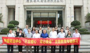 【主题教育进行时】党委理论学习中心组赴广东省廉政教育基地开展学习研讨为不断增强党员领导干部的廉政意识和法纪观念,筑牢拒腐防变思想道德防线, 2019年10月25日下午,在中心党委书记武少新同志的带领下,由中心领导、两委委员和各处室负责人等组成的党委理论学习中心组一行17人,赴广东省廉政教育基地开展“不忘初心、牢记使命”主题教育,并围绕“党性修养、廉洁自律”专题进行了第八次集中学习讨论。 此次学习极具仪式感,中心组成员首先排成队列齐步走进展馆,在武少新书记的带领下重温入党誓词。宣誓的地方有利剑形状的灯,头悬“利剑”使宣誓人对法纪法规、政治规矩和政治纪律心存敬畏之心,体现出从严治党既是严肃的,也是头等大事。 随10-312019