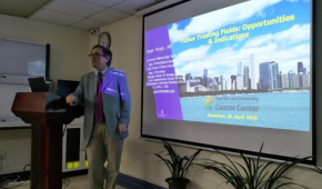 中美神经肿瘤专家联合MDT病例研讨会在我中心召开2019年4月19日,在春暖花开的羊城广州,中美神经肿瘤专家齐聚一堂,在中山大学附属肿瘤医院神经外科学习室成功举行了“中美神经肿瘤专家联合MDT 病例研讨会”。本次会议由广东省抗癌协会神经肿瘤专业委员会主办、中山大学附属肿瘤医院神经外科承办,会议特邀美国西北大学Robert H. Lurie Comprehensive Cancer Center 神经肿瘤科主任 Roger Stupp 教授参加,同时邀请了二十来位国内知名神经肿瘤专家参加。 图1 Roger Stupp教授介绍 “TTFields治疗胶质瘤的个人经验” Roger Stupp教授是Stupp04-252019