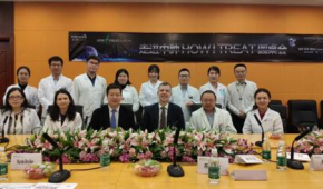 国际淋巴瘤大咖MartinDreyling教授首次造访我院2019年3月7日上午,来自德国慕尼黑大学医学部的Martin Heinz Dreyling教授因参加“How I treat”套细胞淋巴瘤(MCL)专题活动到访我院。Dreyling教授在套细胞淋巴瘤的诊治方面具有极深的学术造诣,是欧洲MCL淋巴瘤协作组主席,是ESMO套细胞淋巴瘤指南的第一作者,长期从事和引领国际MCL的基础与临床的研究,为MCL建立国际诊断治疗规范和临床疗效的持续提升作出巨大贡献。 Dreyling教授首先参观了我院院史馆、淋巴瘤诊治病房和淋巴瘤造血干细胞移植病房,深入了解了我院的相关设施。 随后,Dreyling教授在黄慧强教授主持下,在我院203-132019
