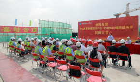 我中心知识城院区医疗科研大楼顺利封顶5月29日上午,中山大学肿瘤防治中心知识城院区顺利举行了医疗科研大楼封顶仪式,中心党政领导、参建单位五洲项目管理、广州市政监理、华方设计、中建八局领导共同为项目浇筑最后一方混凝土。仪式由我中心党委书记武少新主持。 上午10时,骄阳似火,出席仪式的领导嘉宾通过临时楼梯进入到11楼天面。 首先,武少新书记回顾了医疗科研大楼开工至封顶,近一年半时间的建设历程,对各参建单位齐心协力、克服困难,于计划内完成主体结构封顶的工作成果给予肯定,并表示衷心感谢。05-292018