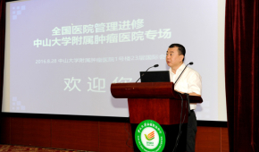 八方宾朋齐聚中肿,共享管理精品课程8月28日,由国家卫生计生委医疗管理服务指导中心指导,中国医院协会大学附属医院分会、中国医学科学院北京协和医学院主办,我院和无界进修共同承办的“全国医院管理进修班-中山大学肿瘤防治中心专场”在我院国际会议厅隆重举行。 中山大学医院管理处副处长汪宗芳、无界进修总编辑许一方,我院徐瑞华院长、武少新书记、李升平副院长、何韵院长助理等出席了本次活动,并与来自全国各地的140余名医院管理者深入分享和探讨了我院在“医院运营管理”方面的经验体会。 进修班开幕式由武少新书记主持,徐瑞华院长、无界进修总编辑许一方女士和江苏恒瑞医药有限公司社会事务部经理王开基先生分别09-022016