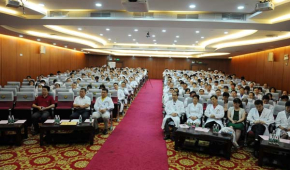 荣光属于每一位共产党人---中心举行中国共产党成立95周年庆祝大会暨“两学一做”党员专题辅导报告会(中心办报道)中国共产党成立95周年之际,肿瘤防治中心于6月28日在本中心简朴而隆重地举行中国共产党成立95周年庆祝大会暨“两学一做”党员专题辅导报告会。中山大学组织部郭予填副部长、广东省委宣传部讲师团冯永忠副团长、中心主要党政领导莅临会场,中心党员代表共两百五十余人参加了大会。会场金色的党徽光泽照亮与会每一位党员的脸庞, 而党的光辉则如夏花般绚烂而绽放! 会前,党员们一起重温了中心历年来的党团活动掠影,激荡人心的红歌在会场荡漾着。表彰大会由中心党委彭望清副书记主持,武少新书记首先宣读了中心《关于表彰先进党支部、优秀党务工作者、优秀共产党员的决定》。他代表中心07-062016